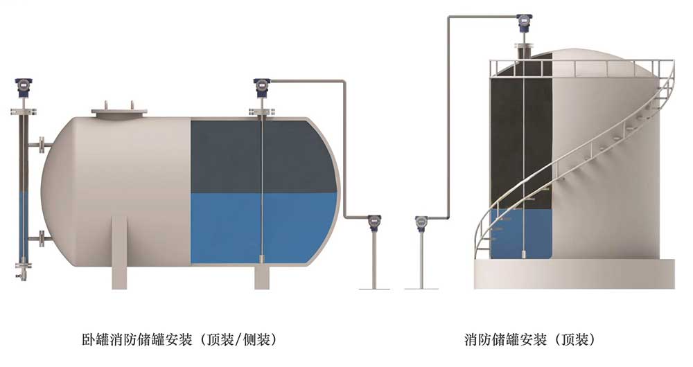 安裝要求:一般采用標(biāo)準法蘭或螺紋安裝于罐頂,特殊工況選擇側(cè)側(cè)垂直安裝,為方便調(diào)試,儀表安裝建議在有平臺的地方。