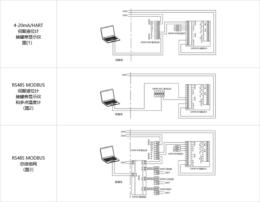 伺服液位計通信方式4-20mA/HART、RS485 MODBUS